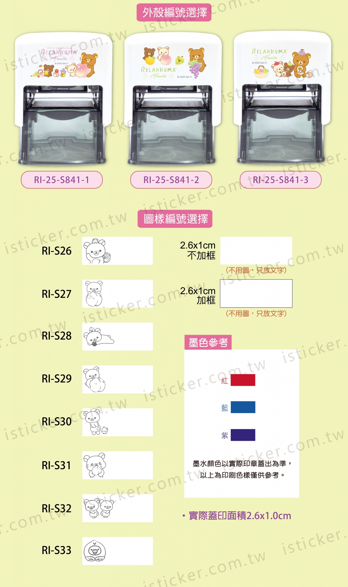 - There are 3 colors of ink pad to choose from: red / blue / purple.