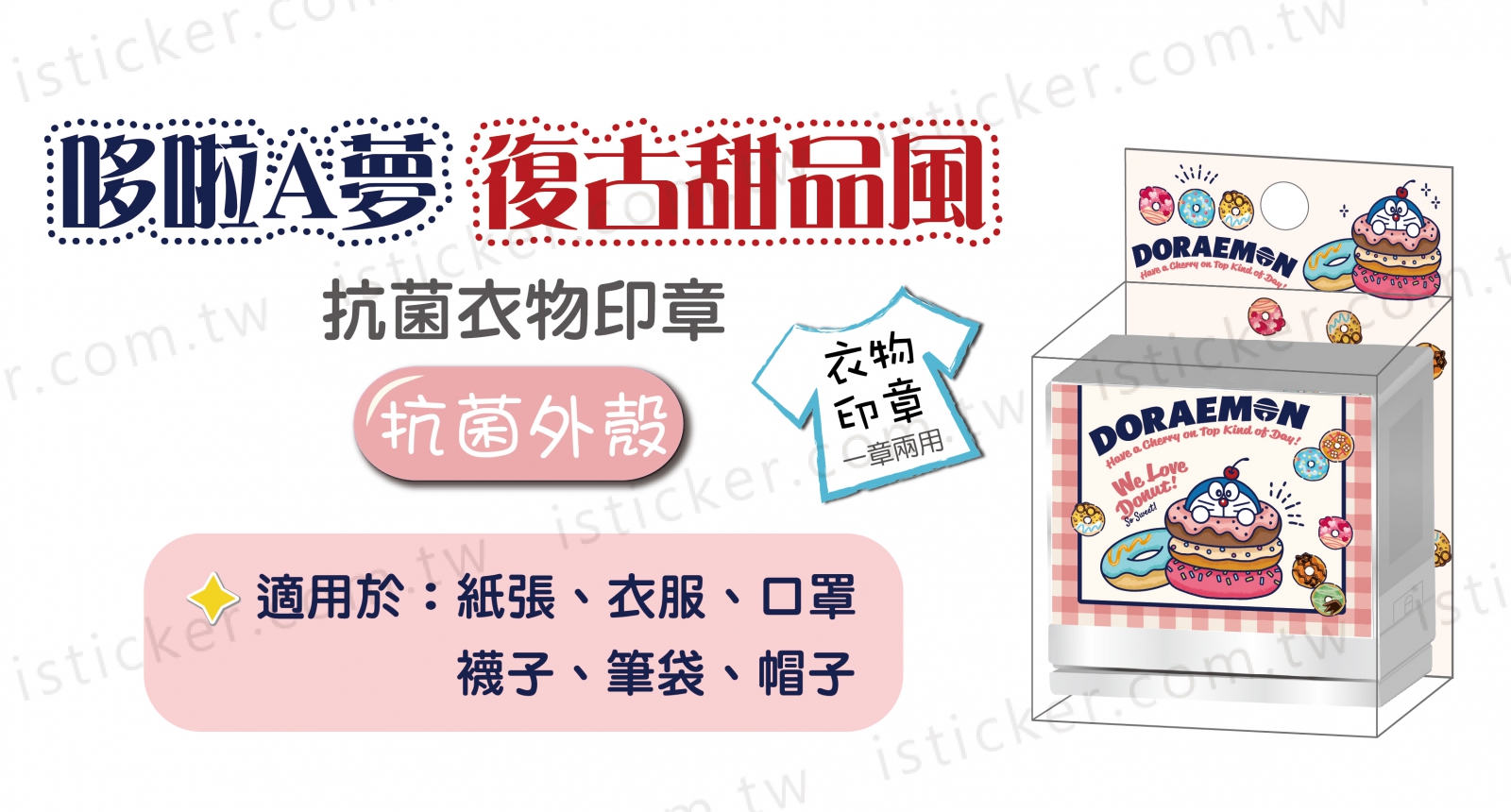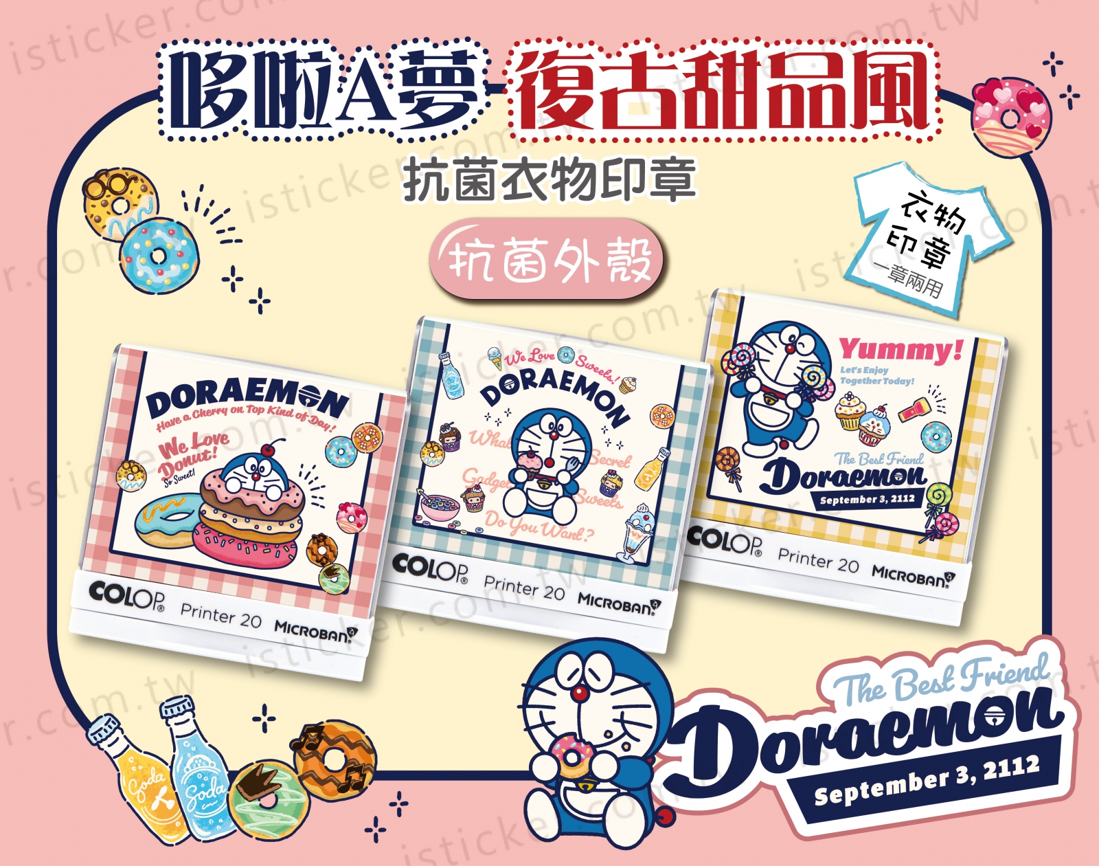 哆啦A夢 復古甜品風 抗菌衣物印章(含空白印台)