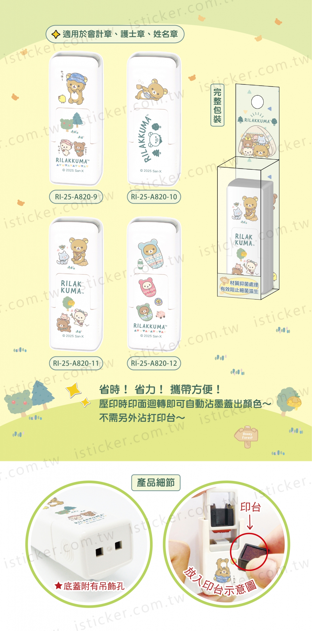 省時、省力、攜帶方便、實用、可愛,適用於會計章、護士章、姓名章,不需要另外沾打印台。