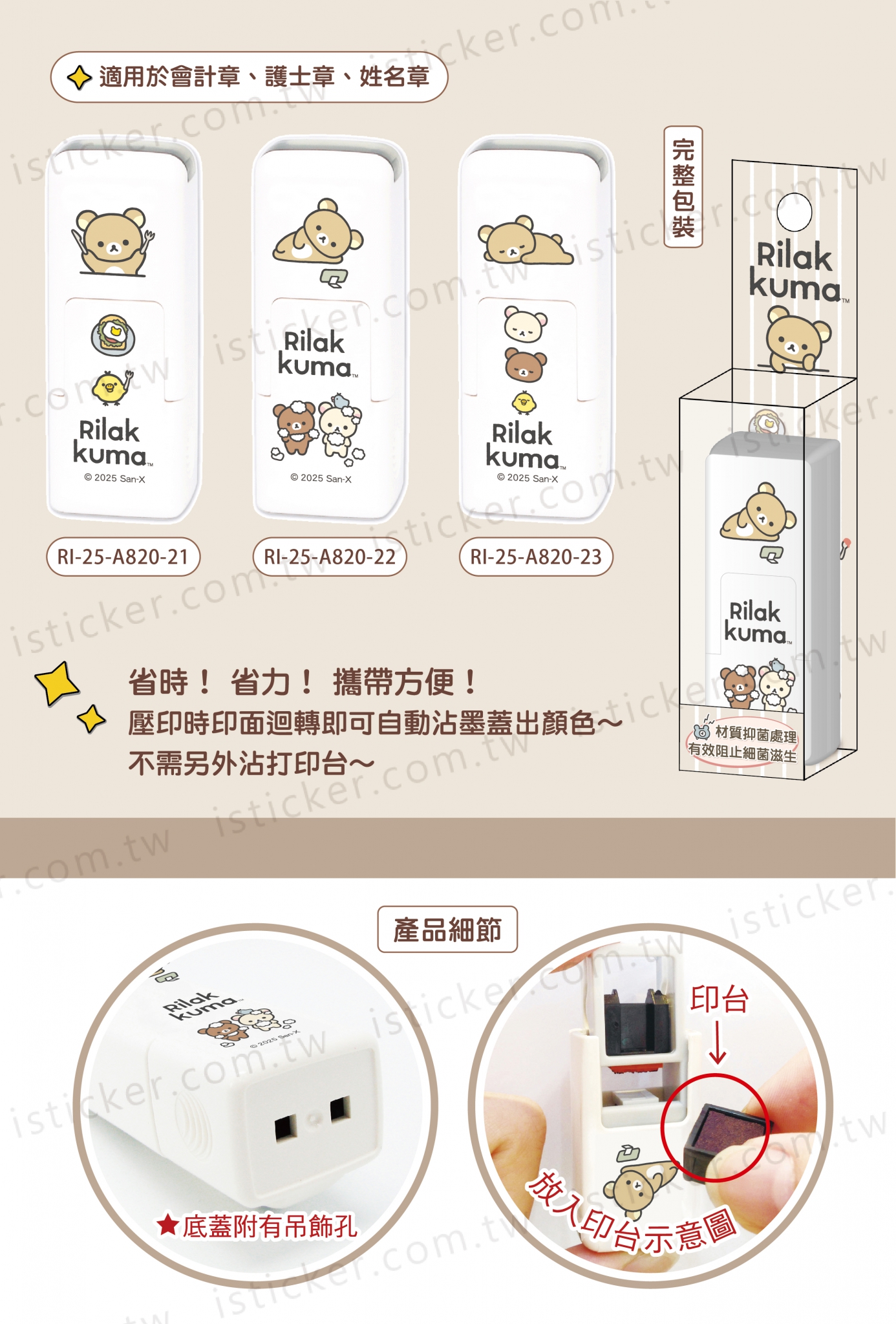省時、省力、攜帶方便、實用、可愛,適用於會計章、護士章、姓名章,不需要另外沾打印台。
