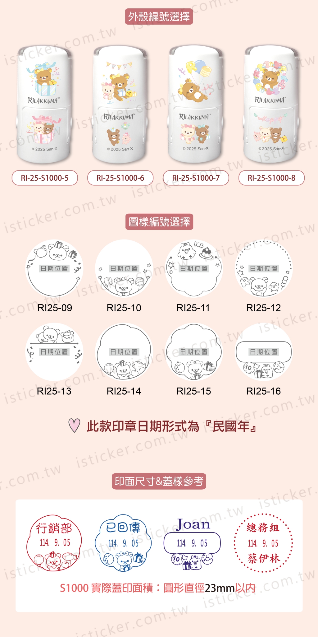印章尺寸有一種:S-1000(印面2.3cm以內)