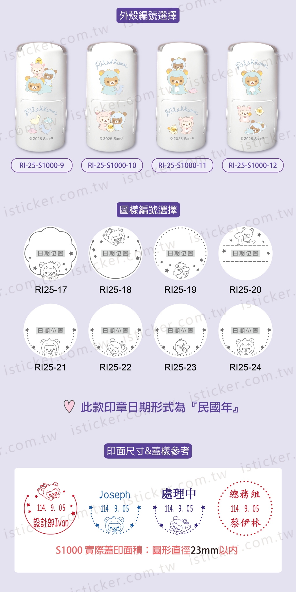 印章尺寸有一種:S-1000(印面2.3cm以內)